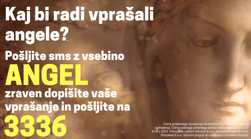 Cenik storitev za ključno besedo ANGEL na 3336: cena poslanega vprašanja se obračuna po ceniku vašega operaterja. Cena vsakega prejetega sms-a (naš odgovor) je 2,49 EUR z DDV. Ponudnik vsebin Gevion d.o.o., ponudnik sms storitev Simpatel d.o.o. Splošni pogoji so objavljeni na www.filipid.si.
